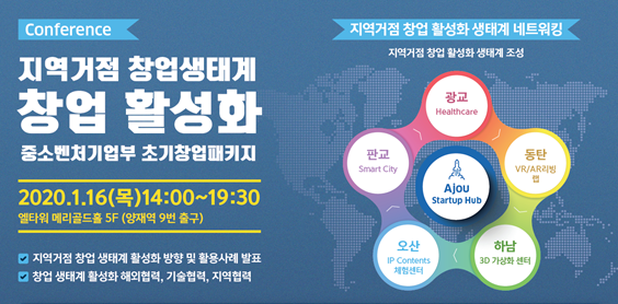 우리 학교 창업지원단이 ‘지역 거점 창업 생태계 활성화 컨퍼런스’를 개최했다. 이번 컨퍼런스는 지역 거점의 창업 생태계 조성을 위한 그간의 노력과 전략, 성공 사례를 공유하고 앞으로의 협력 방안을 모색하는 자리로 마련됐다. 컨퍼런스는 지난 16일 서울 서초구 엘타워 메리골드홀에서 열렸다. 행사는 아주대 창업지원단(단장 이주연 산업공학과 교수)과 한국산업융합기술협회가 주관하고 중소벤처기업부와 창업진흥원이 주최했다. 창업 생태계 활성화에 관심 있는 해외·기술·지역 산학연 협력 관계자들이 참석했다.컨퍼런스는 ▲기조 강연 ▲사례 발표 순으로 진행됐다. 첫 번째 기조강연은 벤처·창업의 성공 신화를 쓴 도전과 나눔 이금룡 이사장이 연사로 나섰다. 이 이사장은 창업 생태계 활성화를 위한 변화와 혁신과 창조적 리더십 등에 대한 철학과 경험을 공유했다. 두 번째 기조강연은 마술사 오은영 교수(남예종예술실용전문학교)가 ‘미술과 함께 하는 명화 산책(미술에서 배우는 창조의 비밀)’이라는 주제로 진행했다.이주연 아주대 창업지원단장은 ‘기술·창업 연계를 통한 지역 거점 창업 생태계 활성화 방향’을 주제로 창업 생태계 활성화를 위한 아주대의 비전과 방향을 제시했다. 이어 지역 거점 창업 생태계 활성화의 실제 사례 발표가 진행됐다. ▲동탄-스마트 안전분야 융합 신제품 및 서비스 실증 리빙랩 기반 구축(김민선 국가산업융합지원센터 소장) ▲광교-개인주도형 의료 데이터 “분산형 바이오헬스 빅데이터” 구축(박래웅 아주대 바이오헬스빅데이터사업단 단장) ▲하남-3D 혼합현실 기반의 가상화 생산지원 및 제품관리 기반 구축(조진웅 전자부품연구원 3D가상화센터 센터장) ▲판교-판교, 제2테크노밸리 기업지원허브 센서블 시티(김흥재 LH공사 성남판교사업본부 본부장) ▲오산-융복합 콘텐츠 클러스터, 체험형 가족복합 문화공간 테마파크(장건 잭슨나인스 대표이사) 발표가 이어졌다. 아주대 창업지원단은 이날 기술·창업 연계를 통한 지역 거점 창업 생태계 활성화를 위해 지역 거점 참여 기관 ▲동탄-국가산업융합지원센터 ▲광교-아주대학교의료원 바이오헬스 빅데이터센터 ▲하남-전자부품연구원 3D 가상화센터 ▲판교-LH공사 성남판교사업본부 ▲오산-잭슨나인스 5곳과 업무협약(MOU)을 체결에 대해 논의했다.국가 선정 우수 산업융합 65개 기업의 협의회인 산업융합선도기업협의회(회장 구기도), 글로벌 창업지원 기관들과의 해외 협력 기반도 마련한다.창업지원단은 KOTRA·글로벌산업경쟁력포럼과 협력하여 창업의 중심 역할을 해온 세계적 기관들과 업무 협약을 체결할 계획이다. 이를 통해 창업 기업들의 해외 진출을 지원하기 위해서다. 글로벌 기관 중 ▲이탈리아 PoliHub ▲스웨덴 Johannesburg Science Park ▲싱가포르 ACE ▲말레이시아 Sunway ▲미국K-Start up ▲중국 TusStar이 협력 대상이다.창업지원단은 지난 2018년 창업선도대학 육성사업에 처음으로 진입하면서 신설되어 전문 인력과 연구 장비 등의 인프라를 바탕으로 초기 창업자의 창업 준비와 사업화, 창업 후 성장 등을 지원해왔다. 특히 광교, 판교, 동탄, 오산, 하남을 연결하는 지역 거점으로서의 지리적 장점을 살려 지역 거점의 창업 생태계 조성을 위해 노력해왔다. 2019년 중소벤처기업부 초기창업패키지 사업 참여 53개 기관을 대상으로 한 8등급 평가에서 2등급 기관에 선정된 바 있으며, 메이커 스페이스 운영 기관으로 신규 선정됐다. 메이커 스페이스는 아주대 캠퍼스플라자에 마련되어 시제품 제작과 사업화 지원 등에 나서왔다.이주연 아주대 창업지원단 단장은 “앞으로 5개 지역 거점과의 협력뿐 아니라 65개 기술 멘토들과의 협력, 5곳 해외 채널과의 협력을 통해 진정한 산학연 창업 생태계를 구축하겠다”며 “성공적인 창업 기업들을 육성할 수 있도록 노력해 나갈 것”이라고 말했다.