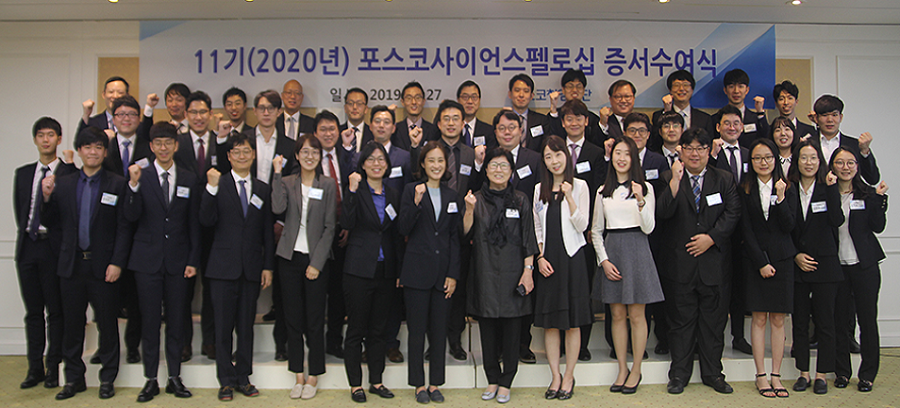 우리 학교 이재현 교수(신소재공학과)가 포스코청암재단의 '제 11기 포스코사이언스펠로' 40인에 선정됐다. 이에 따라 이재현 교수는 재단으로부터 2년간 1억 원의 지원금을 받게된다. 포스코청암재단은 지난달 27일 서울 포스코센터에서 ‘제11기 포스코사이언스펠로’에 선발된 국내 과학자 40명에게 연구증서를 수여했다고 밝혔다. 수여식은 김선욱 재단 이사장, 포스코사이언스펠로 11기 39명, 선발위원장 등이 참석한 가운데 열렸다. 포스코사이언스펠로십은 국내에서 기초과학을 연구하는 과학자들이 자긍심과 안정감을 갖고 연구에 전념해 장차 세계적인 과학자로 성장할 수 있도록 지원하는 포스코청암재단의 사업이다. 올해부터 우리나라 산업기술의 신 성장동력 기반이 되는 응용과학 분야(금속, 신소재, 에너지소재)로 지원 범위를 확대했는데, 우리 학교 이재현 교수가 선정됐다. 올해로 11년째를 맞은 포스코사이언스펠로십은 현재까지 학문별로 수학 75명, 물리학 81명, 화학 81명, 생명과학 93명, 금속 6명, 신소재 6명, 에너지소재 5명, 과정별로는 박사과정 91명, 포스트닥 66명, 신진교수 190명 등 총 347명 펠로에게 203억을 지원했다.