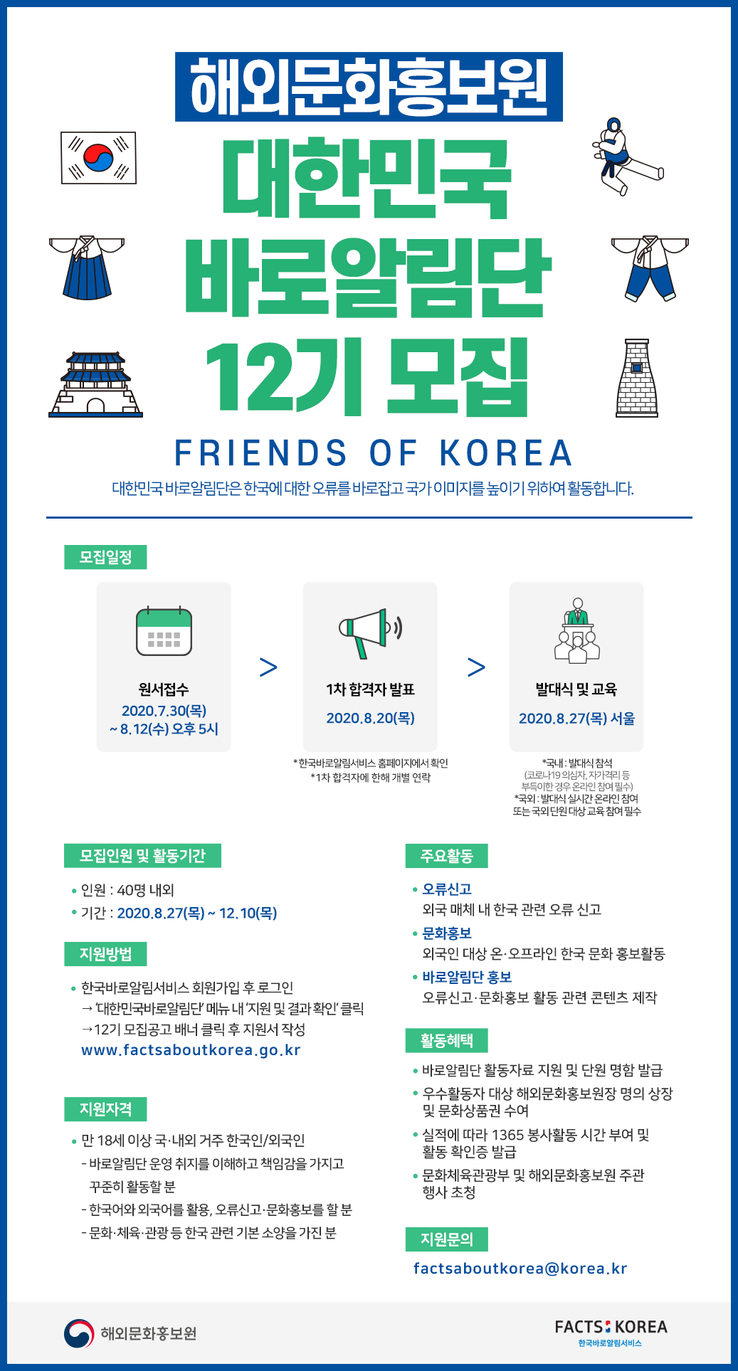 해외문화홍보원 제12기 '대한민국 바로알림단(Friends of Korea)' 모집