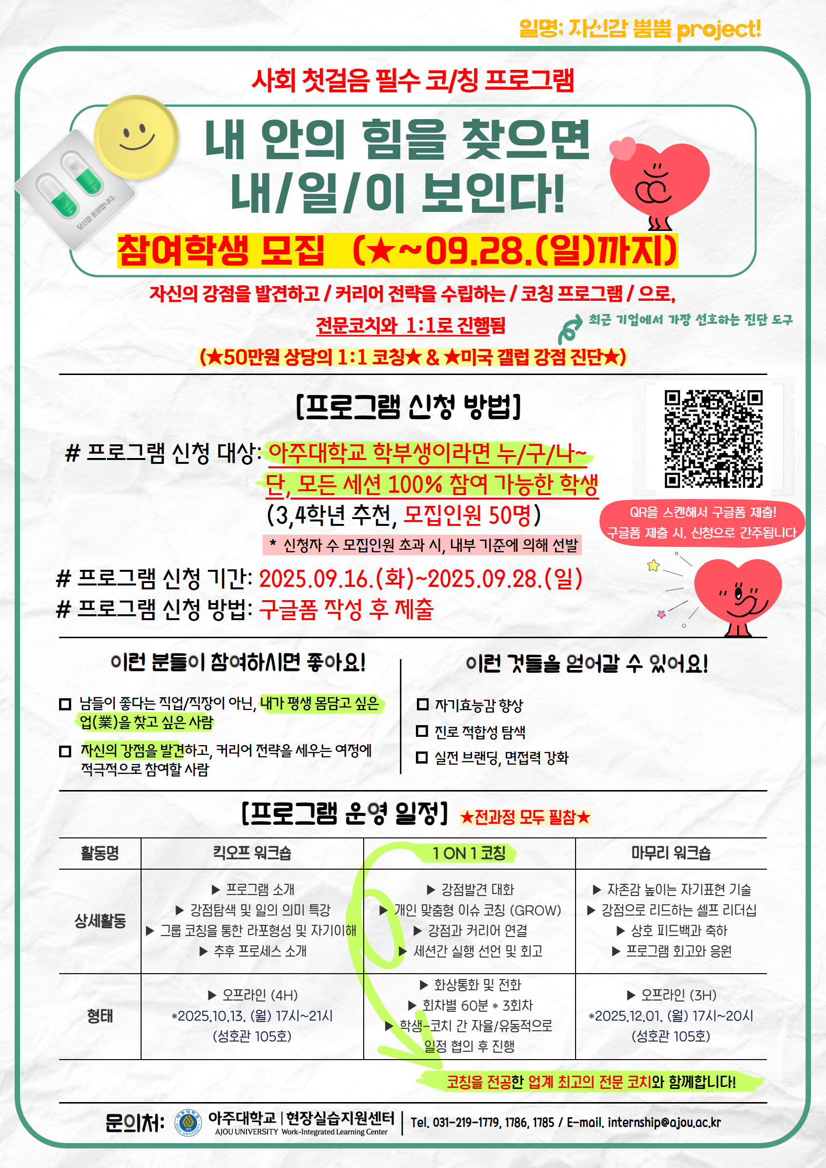 💓[재공지] "내 안의 힘을 찾으면 내/일/이 보인다!" 사회 첫걸음 필수 코칭 프로그램 참여학생 모집 (★~09.28.(일)까지)