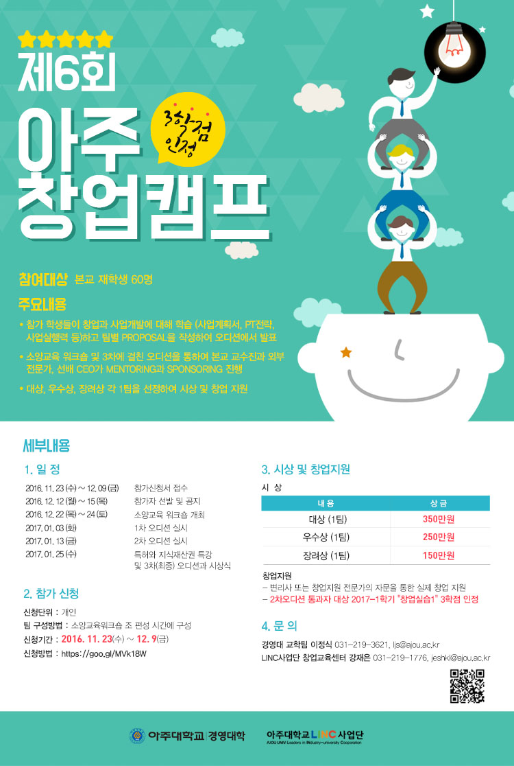 [경영대학·LINC]제6회 아주창업캠프 개최 안내