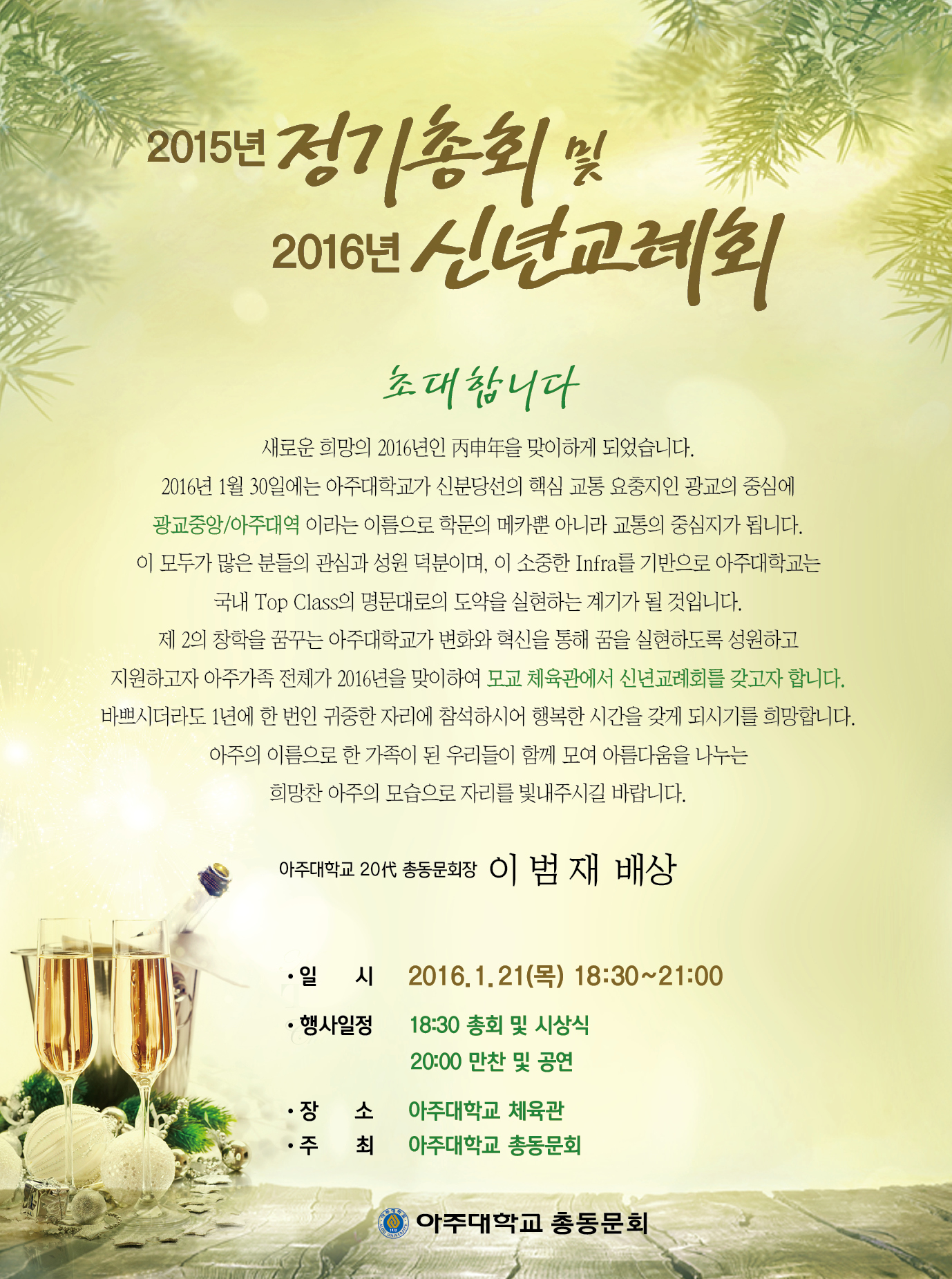 2016 아주대학교 총동문회 신년교례회 개최안내