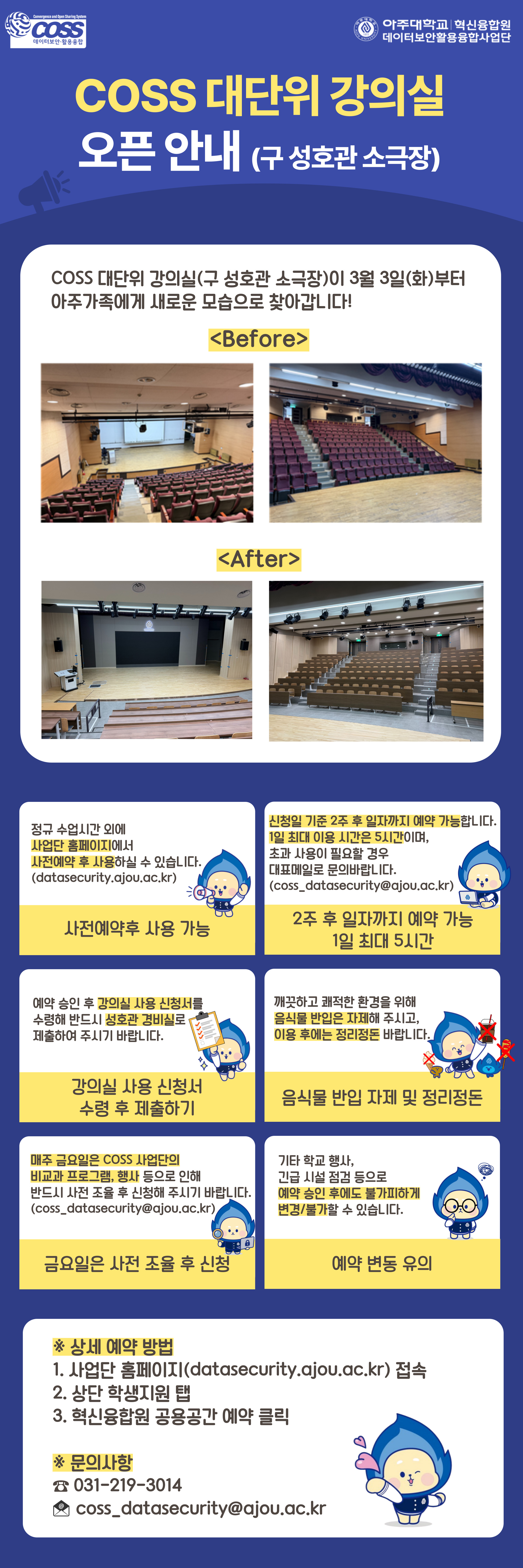 COSS 대단위 강의실(구 성호관 소극장) 오픈 안내