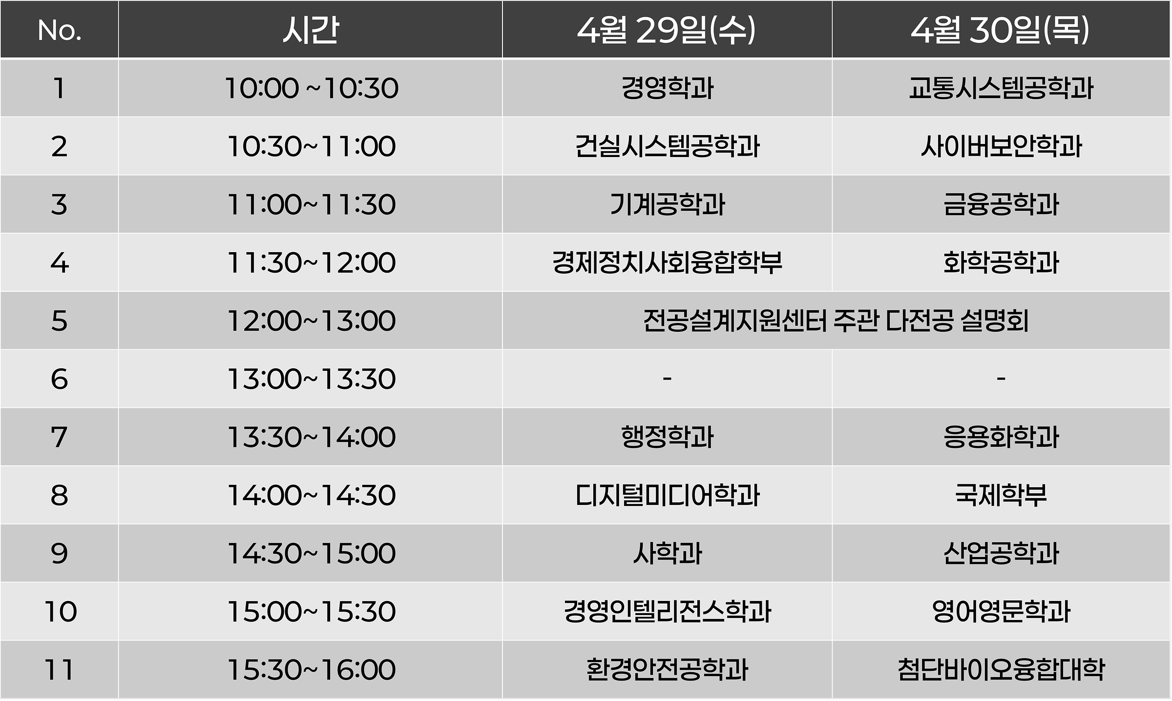 โ€ป ์ „๊ณต ์„ค๋ช…ํšŒ ์‹œ๊ฐ„ํ‘œ