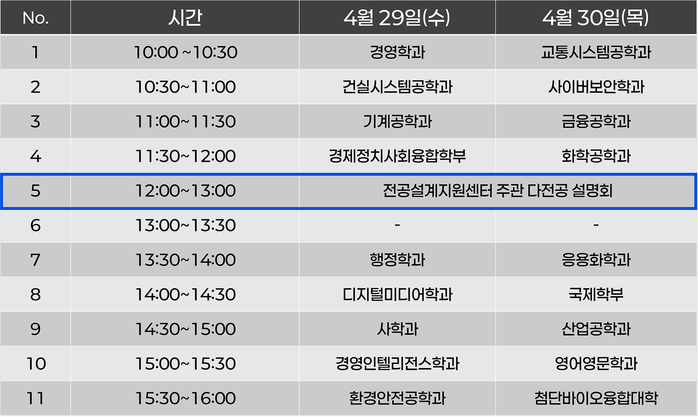 💟 (다)전공 설명회 시간표 💟