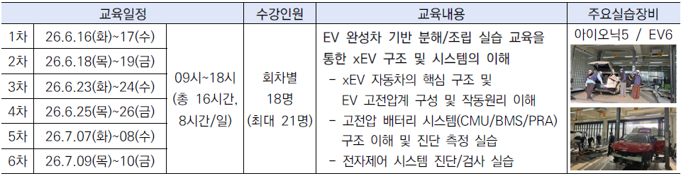 다. 교육대상: 미래자동차 컨소시엄(국민대,계명대,선문대,아주대,인하대,충북대) 재학생
